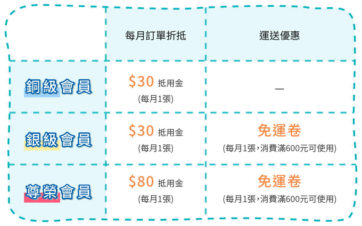 每月贈送一張免運卷(滿600元)