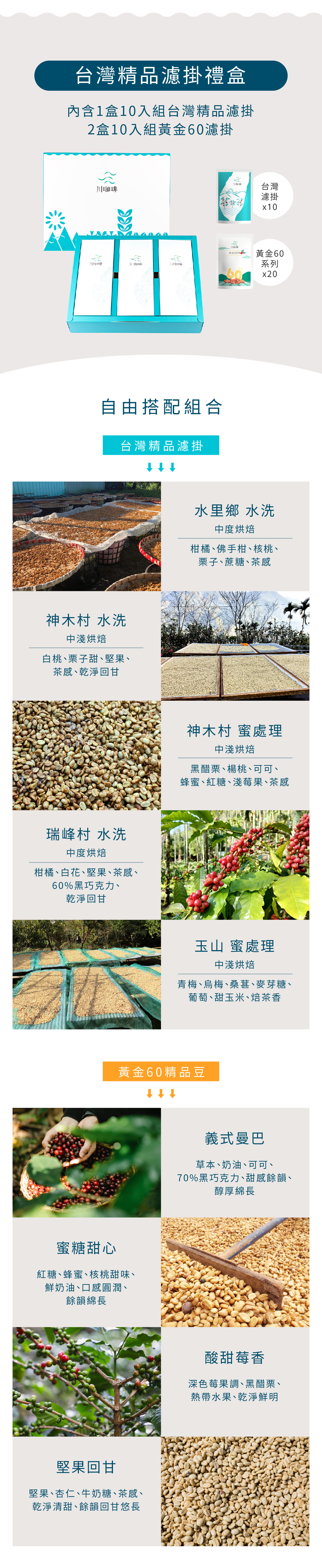 -內容物:100%台灣精品濾掛10包+黃金60系列濾掛20包